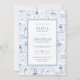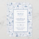 This elegant timeless coastal wedding invitation features a seaside toile de jouy pattern of hand drawn lighthouses, sailboats, and ocean waves, reminiscent of summer on the New England coast.