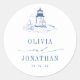 Blue Coastal Toile Lighthouse Wedding Classic Round Sticker