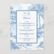 Blue Coastal Toile Wedding Dinner Reception Menu