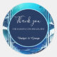 Elevate your coastal celebration with our customisable round sticker, a perfect addition to your special day. Inspired by the soothing blue hues of the ocean and the serene coastal vibes, this thank you label sets the tone for an unforgettable experience. Adorned with elegant seashells and marine animal motifs, along with vibrant generative artwork inspired by the coast, it adds a touch of sophistication to any packaging. Personalise with your monogram or name and wedding thank you text for a truly unique touch.