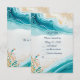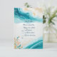 Respond to the coastal celebration with this stylish RSVP card. The serene blue hues and vibrant ocean waves, accented by colourful seashells and marine animals, evoke a preppy summer beach vibe. Our generative artwork adds a unique touch of elegance to this invitation.