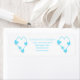 Wedding return address label blue coloured butterfly heart design. Customise this wedding return address label with your wedding details. Should you require any help with customising then contact us through the link on this page. Blue coloured butterfly heart design personalised wedding return address label
