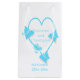Wedding favour gift bag blue coloured butterfly heart design. Customise this wedding favour gift bag with your wedding details. Should you require any help with customising then contact us through the link on this page. Blue coloured butterfly heart design personalised wedding favour gift bag