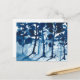Blue coloured watercolor landscape, abstract tree holiday postcard