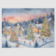 Blue Colourful Watercolor Decoupage Winter Scene Tissue Paper