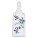 A pretty little hummingbird comes to check out the delicate blue Columbine blossoms on this decorative and useful cutting board. The watercolor images are placed on a white background, with the text "Colorado" in matching blue script. If you prefer to change or remove the text, you may do so easily. Be sure to see the matching home products in our store.