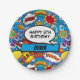 Blue Comic Book Superhero Birthday Party Paper Plate