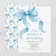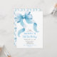 This cute and whimsical birthday party invitation features a watercolor blue coquette bow. The text combines handwritten script and serif fonts for a stylish and modern look.