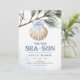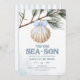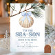 Blue Coquette Bow Coastal Christmas Invitation, Tis The Sea-Son Holiday Party Invite, Editable Winter Coastal Holiday Party