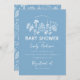 A baby blue Coquette Modern Hand Drawn Baby Shower invitation design typically blends whimsical, playful elements with a contemporary aesthetic. The 5x7 size is a standard and popular choice, providing enough space for all the important details while maintaining an elegant, compact format, however other formats are available.