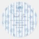 The sticker is made on wonderful paper and had no problem sticking to the bag that I purchased to put it on. I wanted to find a design that would be cute for the bride and groom and this one fit the bill as it has cute "bees" buzzing around and the wedding was taking place in a town called "Bee Cave". The packaging was great and protected the stickers. The website is easy to navigate and there are so many color choices. I had no problem finding a color that the bride was using on everything else selected. The design was adorable and there were many to choose from. You can make the figure as larger or smaller and you can place the photo and writting whereever you want to in the sticker. The printing is fabulous..better than expected.