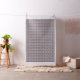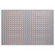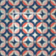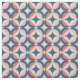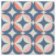 This mid-century modern design features a blue and coral geometric pattern.