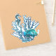 Custom-cut vinyl sticker with an image of blue coral sheltering a gleaming blue seahorse and a beautiful blue fish with light blue topaz air bubbles. See matching confetti, favour bag, favour tag and wrapping paper. See the entire Under the Sea Sticker collection in the INVITES | Stickers & Labels section.