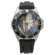 Has heft and feel of expensive stainless steel quartz wrist watches. Solid construction and good looks. Although it had a really top quality rubber strap, I substituted a stainless steel "Shark" style mesh strap, which I think is the most comfortable strap available. Perfect.  True colors of original image.  Clear, crisp image precisely aligned and spaced.