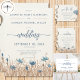 Soft blue cornflowers blooming in a soft tan brown field of dried grasses make this simple wedding details enclosure card modern yet rustic and unique. You can almost feel the gentle breeze moving the grasses. Simple, yet elegant, the earth tones and soft blues are the perfect combination. The back of the card carries the field theme. Created by Simply Farmhouse Press.