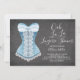Ooh La La Lingerie Bridal Shower Invitation featuring a lacy blue & White corset set on a popular chalkboard background with a coordinating back