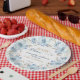 These “Baby in Bloom” plates were inspired by delicate blue cosmos flowers swaying in a spring breeze. The airy watercolor blooms create a soft floral frame that makes desserts, cake, and party treats look even sweeter—perfect for a stylish garden or spring baby shower celebration.