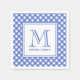 NewParkLane - Personalised paper napkins, with a navy blue, rustic, country style gingham pattern, and a white frame with a blue border for your monogram and (family) name.
