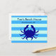 Send summer greetings this summer with a personalised postcard from your beach house! This nautical design features stripes and a big blue crab and will make recipients wish they were there.