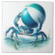 This ceramic tile is shown with a blue crab holding a beach ball art print.