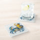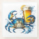 This glass coaster is shown with a blue crab holding a beer in celebration art print.