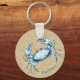 A drawing of a crab in blue is superimposed on a texured tan background on this ocean-themed keychain. Perfect stocking stuffer for anyone who loves the beach, nature, and marine life.