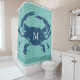 Blue Crab Sea Waves Rope Monogrammed Shower Curtain