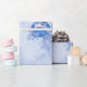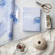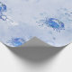 Watercolors in shades of blue form an artistic watery background for the blue crab illustration.
