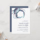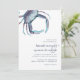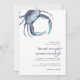 Coastal chic wedding invitation features a watercolor blue crab illustration at the upper left in faded harbour blue, with your wedding details in classic navy blue. Perfect for beach, summer, or nautical weddings, especially those set in the blue crab regions of the mid Atlantic, these coastal style wedding invitations reverse to solid harbour blue.