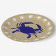 Blue Crab & White Starfish Nautical Beach "Burlap" Paper Plate