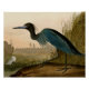 Blue Heron Bird from Audubon Birds of America - From John James Audubon "Birds of America" books published in the early 1800s, this is the Audubon Blue Crane or Blue Heron image. A vibrant beautiful wading bird, the Little Blue Heron is a colourful print from  the original Audubon birds of america prints. Audubon is synonymous with bird drawings, having produced over 400 paintings in his lifetime. This little blue crane, or blue heron, is wading on the shore, with marsh grasses and another heron in the background.