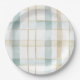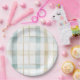 Blue Cream White Plaid Stripes Birthday Paper Plate