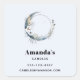 Business stickers with a mystical illustration. A dark blue crescent moon with a elegant thin circle outline and white flower blossoms along its edges.