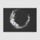 Tissue paper with a mystical illustration. A dark blue crescent moon with a elegant thin circle outline and white flower blossoms along its edges.