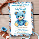 Blue Crocheted Teddy Bear Boy's Baby Shower Invitation