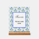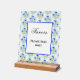 An acrylic table top sign with wood stand will certainly get noticed. The background and image can be personalized. Original artwork by W.B.