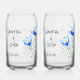 Can glasses with beautiful images of blue crocus flowers. The images, background and text can be personalised. Original artwork by W.B.