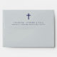 Celebrate a sacred milestone with this beautifully designed baptism invitation that embodies tradition and elegance. Set on a soft blue background, a Dark Navy Blue cross crowns the design and highlights the heartfelt message