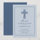 Invite family and friends to celebrate a sacred milestone with this elegant blue cross First Communion invitation. Featuring a refined leafy cross illustration, soft blue tones, and timeless typography, this design offers a beautiful balance of tradition and modern simplicity.