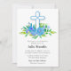 Blue Cross & Flowers Baptism, Christening Invites