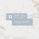 This classic first holy communion favour tag features a blue cross in a dark blue frame, all on a soft blue background . Customise this small tag with your personalised text in white.