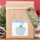 A soft blue cupcake with blue and pink frosting and a yummy blueberry on top. A striped border of blue accents the word 'thank you' Customize by changing the words as desired.