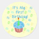 Blue Cupcake with Candle First Birthday Classic Round Sticker