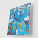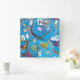 A pile of brightly coloured cupcakes decorated with marshmallows, chocolate stars, hearts, jelly sweets. sprinkles and glitter - ready to eat! Wall clock with a blue, pink, yellow, green, red, white, brown and silver customisable design for you to personalise with your own text, pictures and ideas. Other style options available. An original photograph stylised using digital techniques by Jess Perry.