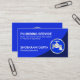Cover features a blue shaded curved design that has a silver blue faucet logo, you can use. At the the top is the business name "PLUMBING SERVICE" and its contact details. Near the base lies your prestigious name and the job title.