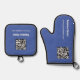 Blue Custom Business Name Barcode QR Code Oven Mitt & Pot Holder Set