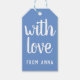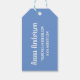 Simple custom cornflower blue gift tags. The font style and size can be changed by clicking on "customise further." The text on the back can be changed into a personal message or can be deleted.