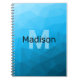 Blue cyan gradient geometric mesh pattern Monogram Notebook