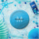 Blue cyan gradient geometric mesh pattern Monogram Paper Plate
