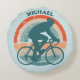 Blue Cyclist Retro Rainbow Round Cushion